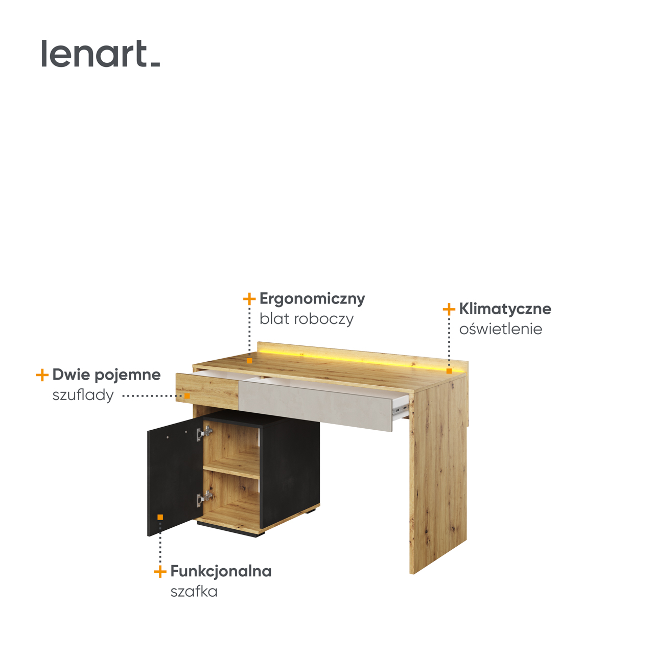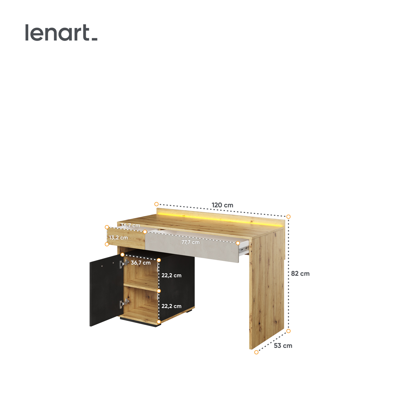 | Wybarwienie korpusu | Dąb artisan / Raw steel | |