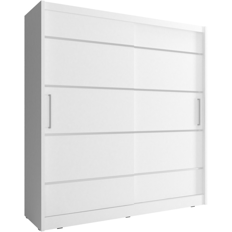 Za przykład niech posłuży biała szafa przesuwna MAYA ALU o szerokości 180 cm. Dostępna jest także w innych wymiarach, dzięki czemu łatwo dopasujesz ją do swojego wnętrza. Posiada drążek na ubrania oraz głębokie półki. Model ten możesz wyposażyć w praktyczny kontenerek z szufladami i oświetlenie ledowe. W kolekcji MAYA znajdziesz ponadto szafy z lustrem, które dostosujesz do swoich potrzeb.