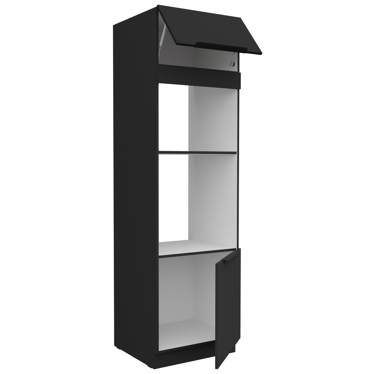Wnętrze szafki w kolorze białym. Szafka ma jedną półkę. Otwory na uchwyt wiercone nieprzelotowo. Szafka zabudowa piekarnika i mikrofalówki. |