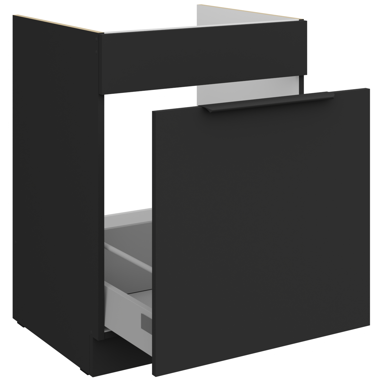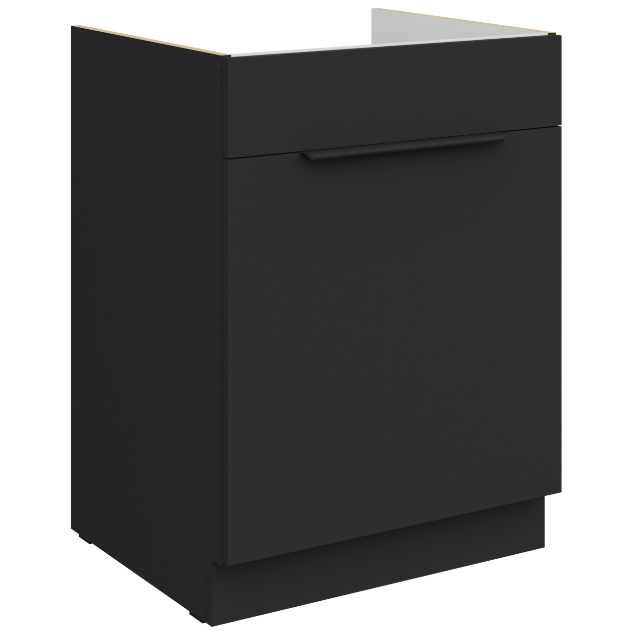 Szafka dolna pod zlew Wnętrze szafki w kolorze białym. Otwory na uchwyt wiercone nieprzelotowo. |