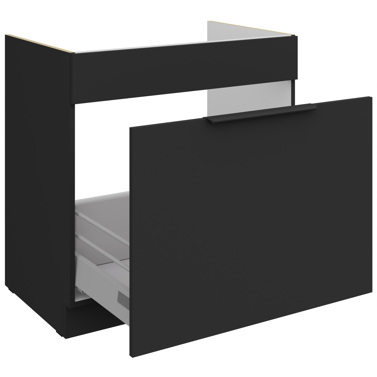 Wnętrze szafki w kolorze białym. Otwory na uchwyt wiercone nieprzelotowo. Szafka dolna pod zlew. |