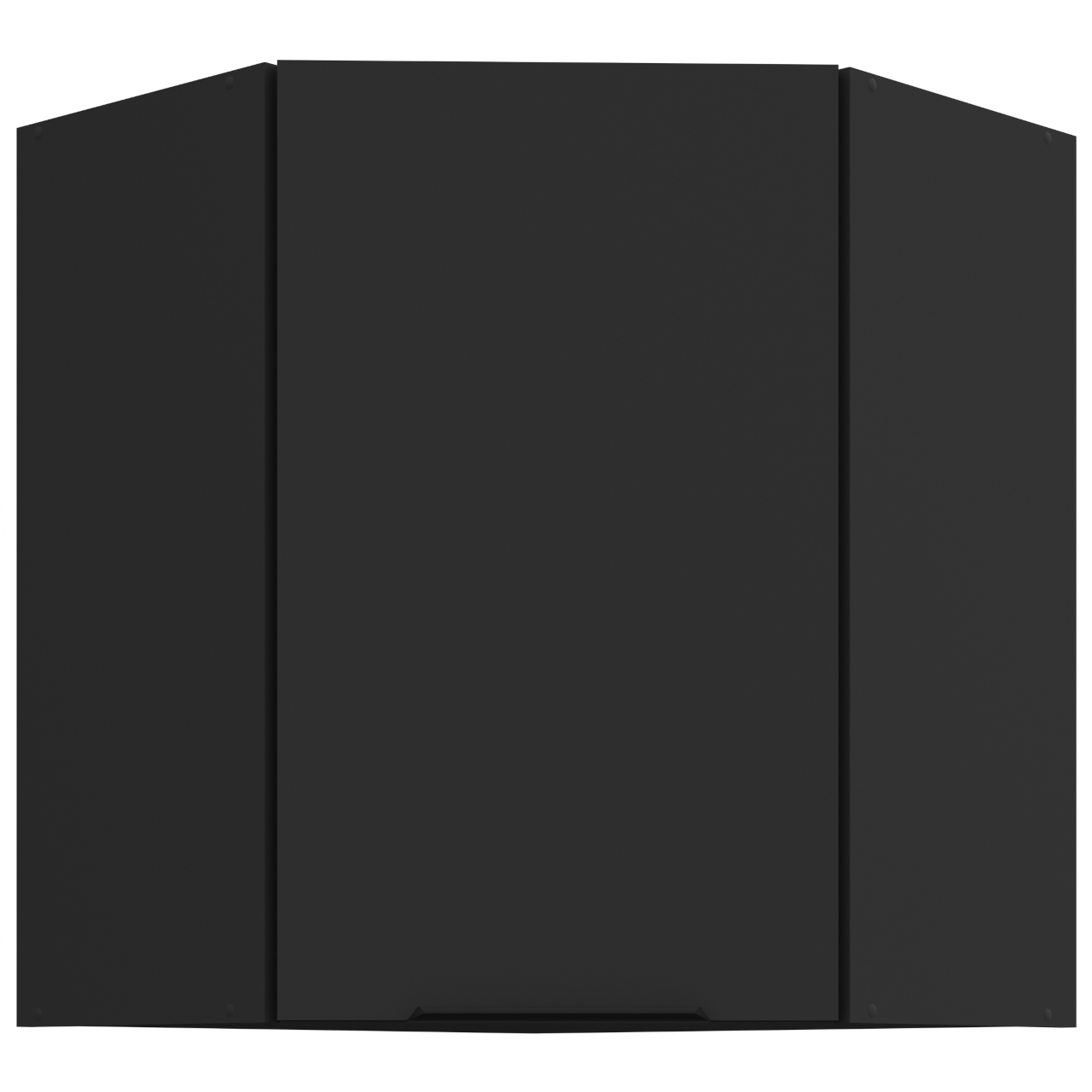 Wnętrze szafki w kolorze białym. Szafka ma dwie półki. Otwory na uchwyt wiercone nieprzelotowo. Drzwi montowane pod kątem 45° |
