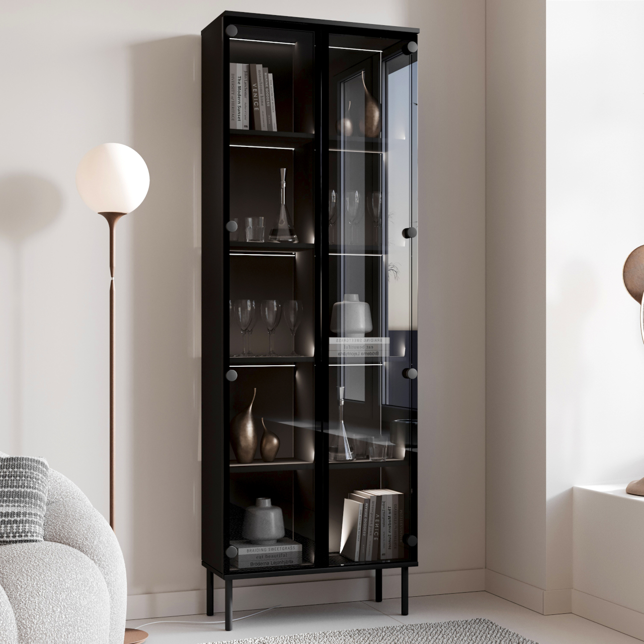 Dzień dobry. Oświetlenie można zakupić dodatkowo. Podłączanie do za pomocą wtyczki. Nie ma możliwości zmiany koloru szkła.