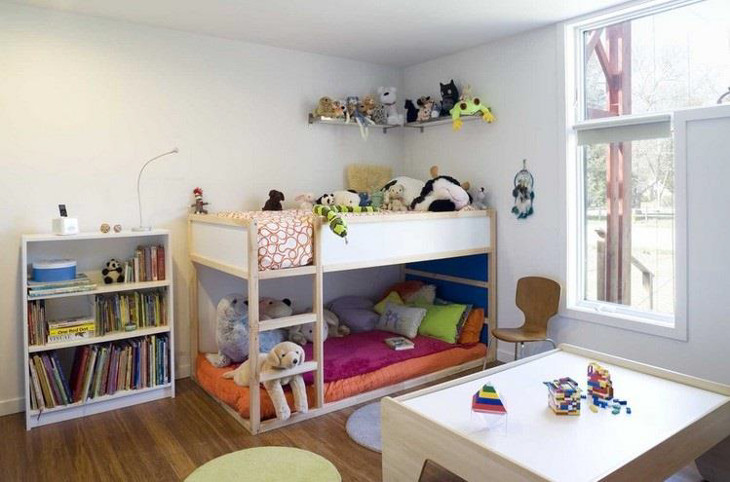 Nie szkodzi, że jesteś rodzicem jedynaka - łóżko piętrowe zawsze jest dobrym pomysłem! Na górze można spać, a na dole bawić się, odpoczywać i czytać. Chcesz jeszcze bardziej uszczęśliwić swoje dziecko? Zawieś zasłonkę w dolnej części łóżka, a na ścianie zamontuj kinkiet, by maluch mógł śledzić ekscytujące przygody ulubionych bohaterów w swojej bezpiecznej kryjówce.