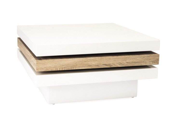 Dzięki nietypowej formie i uniwersalnej kolorystyce ława SERENA doskonale uzupełni nowoczesną, neutralną aranżację wnętrza. Wysuwana szuflada może pełnić funkcję praktycznego schowka na piloty, książki lub gazety.