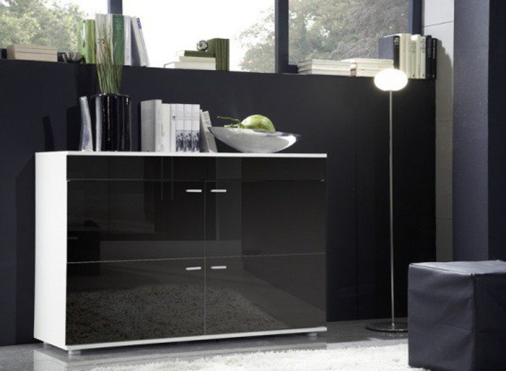 Komoda LOGO 2E biały/czarny połysk (BLACK)
