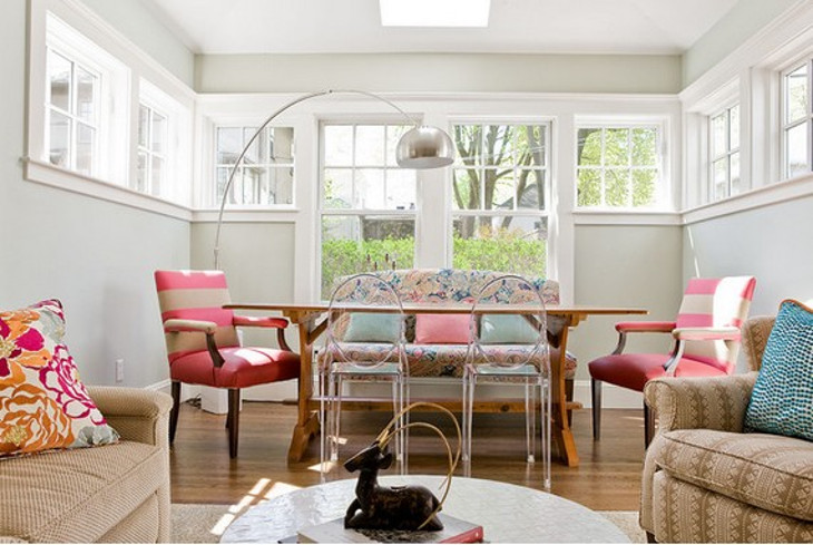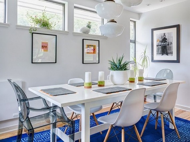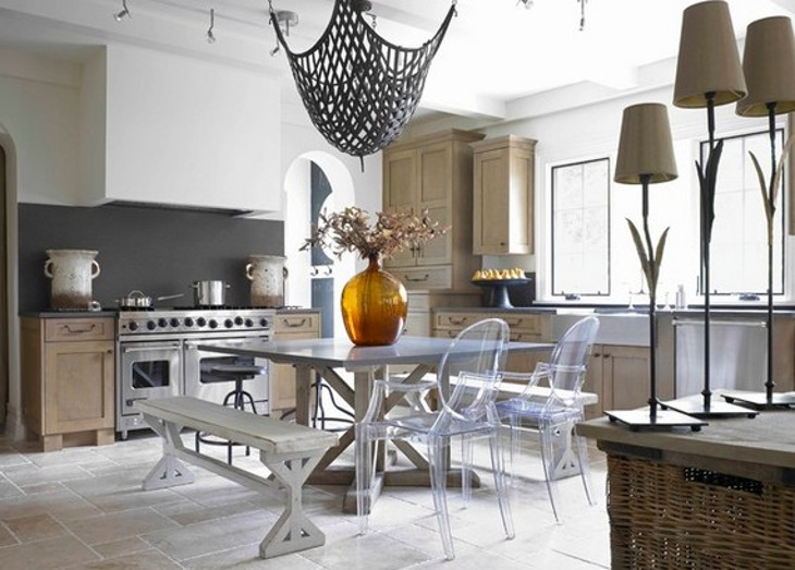 Bardzo ciekawym i stylowym rozwiązaniem jest łączenie transparentnych krzeseł z innymi rodzajami siedzisk, nawet takimi, które radykalnie odbiegają od siebie pod względem stylistycznym.