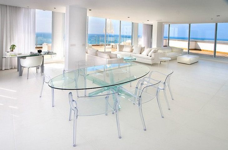 Właściciele bardziej imponującego metrażu też mogą zdecydować się na przeźroczystości. W dużych, przestronnych wnętrzach transparentne meble to prosty sposób na stworzenie aranżacji niebanalnych, eleganckich i wyrafinowanych.