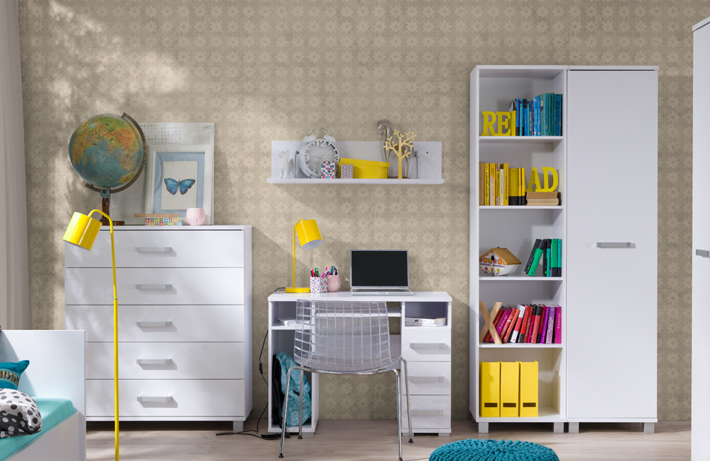 Urządzając kącik do pracy w domowym zaciszu możemy postawić na nieco mniej formalny styl. Najważniejsze, aby czuć się komfortowo w zaaranżowanej przestrzeni. Białe meble biurowe z kolekcji MAXIMUS pozwolą stworzyć przytulne home office. Wystarczy dorzucić kilka dodatków, które podrasują wygląd wystroju. Na zestaw składa się biurko z szufladami, dwa regały, półka „Tukan” oraz duża komoda. W tak zaaranżowanym pomieszczeniu praca będzie czystą przyjemnością!