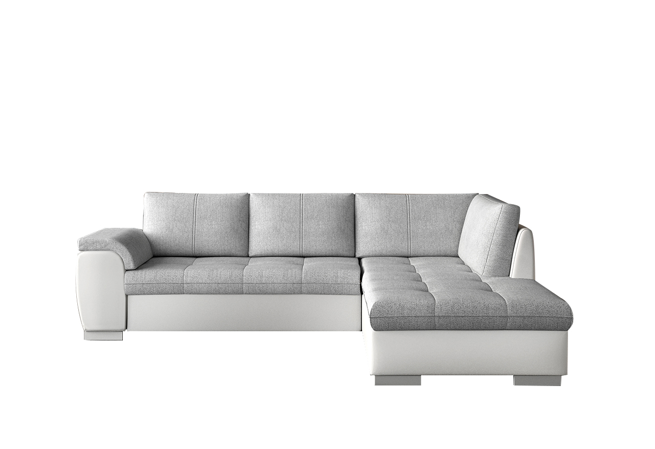 Ciekawą alternatywą do nowoczesnego salonu lub pokoju młodzieżowego jest szary narożnik INEZ z dekoracyjnymi poduszkami w komplecie. Model ten posiada funkcję spania oraz dwa praktyczne schowki na pościel.