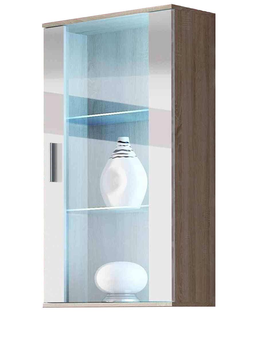Nie potrzebujesz wiele miejsca, aby wstawić do pomieszczenia elegancką witrynę ze szkłem. W naszym e-sklepie znajdziesz ogromny wybór modeli o kompaktowych wymiarach, które można powiesić na ścianie. Jedną z propozycji jest stylowa witryna wisząca SOHO z białym frontem i korpusem w odcieniu dębu sonoma.