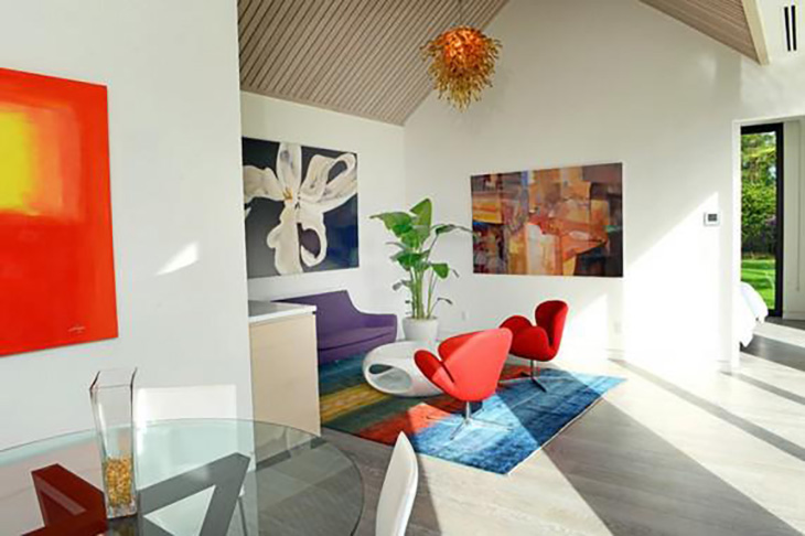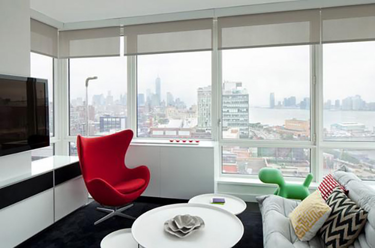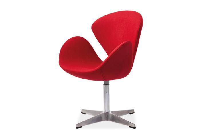 Choć czerwień najlepiej prezentuje się jako samodzielny akcent kolorystyczny, świetnie sprawdzi się też w różnobarwnej aranżacji. Fotel Devon do złudzenia przypomina kolejny projekt Jacobsena - piękny i nietuzinkowy fotel Swan.